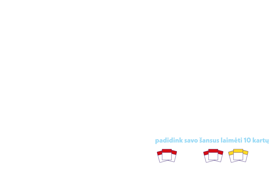 2.1.4. Dalyvis gali registruoti kvitus neribotą kartų skaičių. Kiekviena nauja registracija suteikia teisę pasirinkti registracijos tipą arba, pasirinkus didžiųjų prizų registraciją, tęsti nuosavybės kortelių rinkimą. Vienas Dalyvis gali laimėti kelis momentinius prizus, tačiau tik vieną didįjį prizą per visą Akcijos Laikotarpį (arba vieną savaitinį 100 EUR prizą, arba pagrindinį kelionės prizą). Savaitinio 100 EUR prizo laimėtojas automatiškai nebedalyvauja kituose savaitiniuose ir pagrindinio kelionės prizo traukimuose.