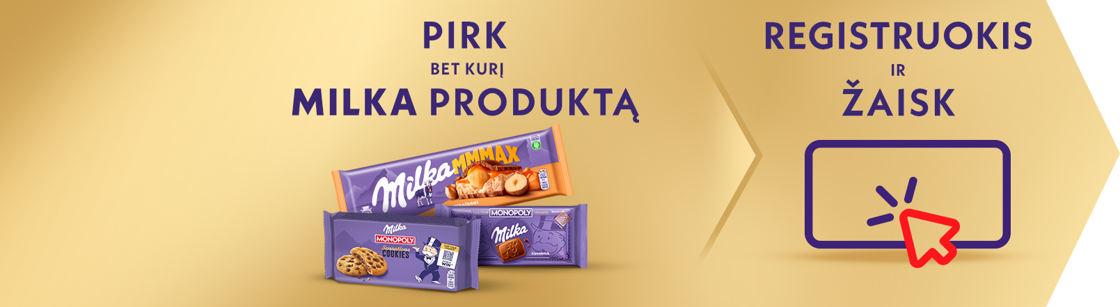 2.1.1. Prisijungti prie Akcijos internetinėje svetainėje https://mondelezpromo.com/lt/ nuskenavus reklamose ar MILKA produktų pakuotėse pateiktą QR kodą arba tiesiogiai apsilankęs svetainėje ir paspaudęs kampanijai skirtą reklaminį skydelį (angl. banner);